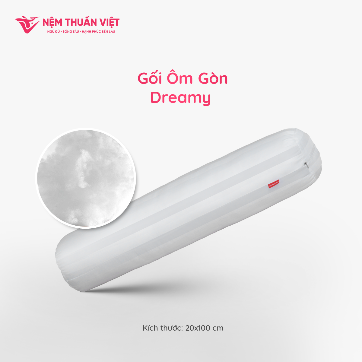 Gối Ôm Gòn Dreamy Thuần Việt với lớp bông gòn nhân tạo mang đến cảm giác mềm mại, êm ái trong từng giấc ngủ. Thiết kế khoá kéo giúp dễ dàng tháo mở khi vệ sinh gối.