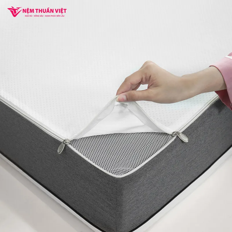 Bên cạnh đó, mặt dưới áo nệm được bố trí chống trượt, giúp nệm không bị xê dịch khi sử dụng, cố định nệm, giúp bảo vệ và tăng tuổi thọ của nệm. Áo nệm được bổ sung khoá kéo tiện lợi cho việc vệ sinh và làm sạch bụi bẩn.