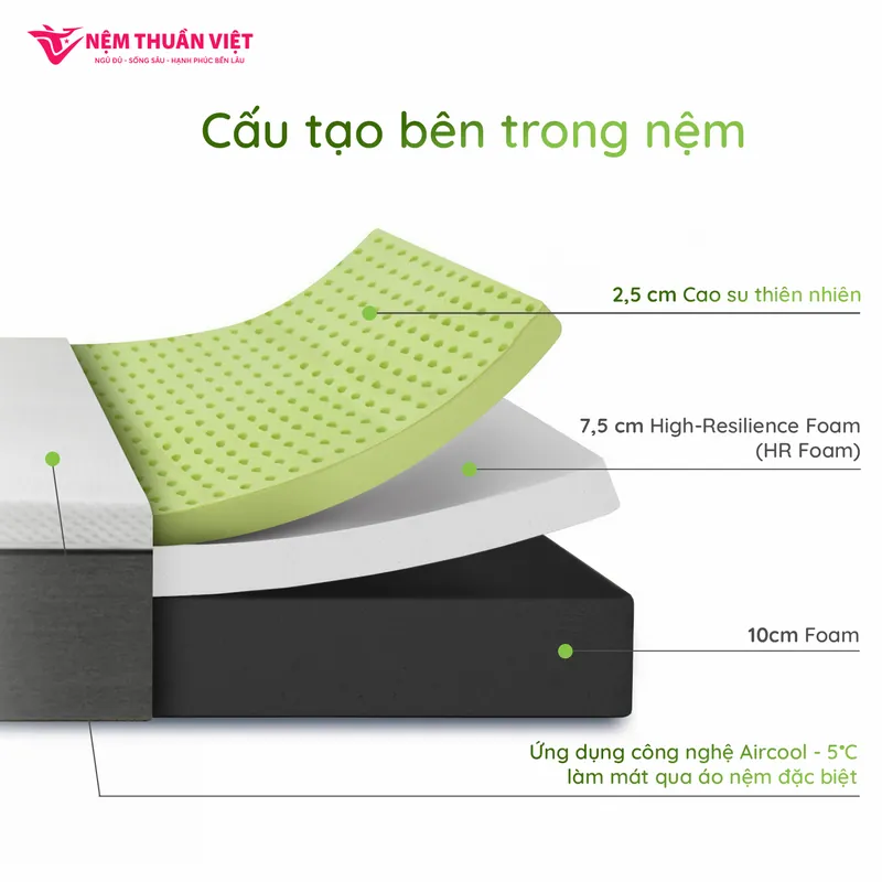 Nệm Foam Latex Thuần Việt Hybrid – Công nghệ đa tầng, nâng đỡ & êm ái gấp đôi