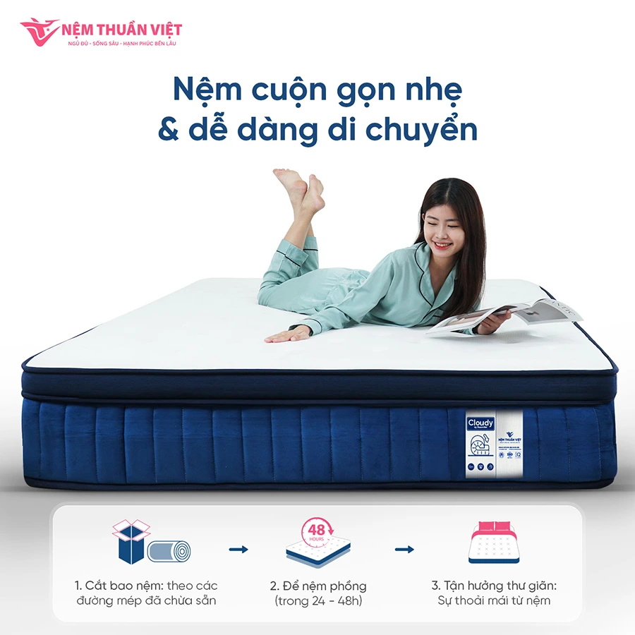Nệm lò xo Thuần Việt Cloudy – Êm ái, bồng bềnh tựa trên mây