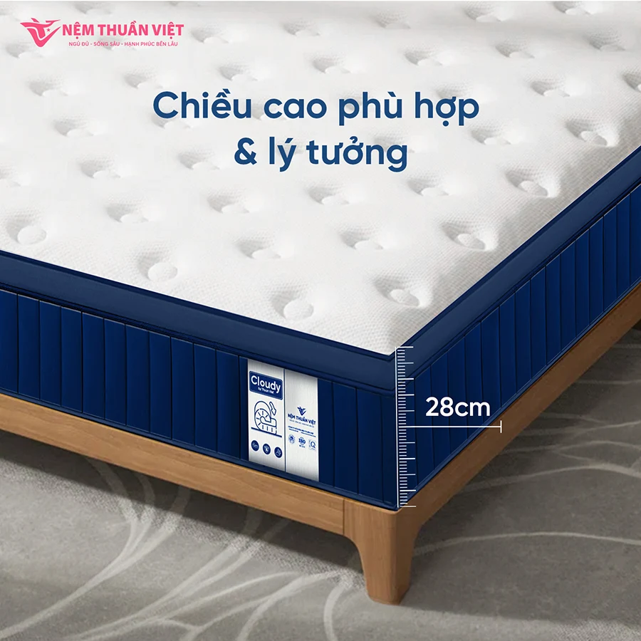 Nệm Lò Xo Thuần Việt Cloudy là sự lựa chọn lý tưởng cho những ai thích nằm nệm cao, nâng đỡ thoải mái tối đa. Nổi bật với thiết kế đẳng cấp, Cloudy không chỉ là biểu tượng của sự sang trọng mà còn là lựa chọn hoàn hảo cho những người có gu thẩm mỹ tinh tế, mong muốn tìm kiếm một “siêu phẩm nghỉ dưỡng” 5 sao ngay tại chính căn phòng của mình.